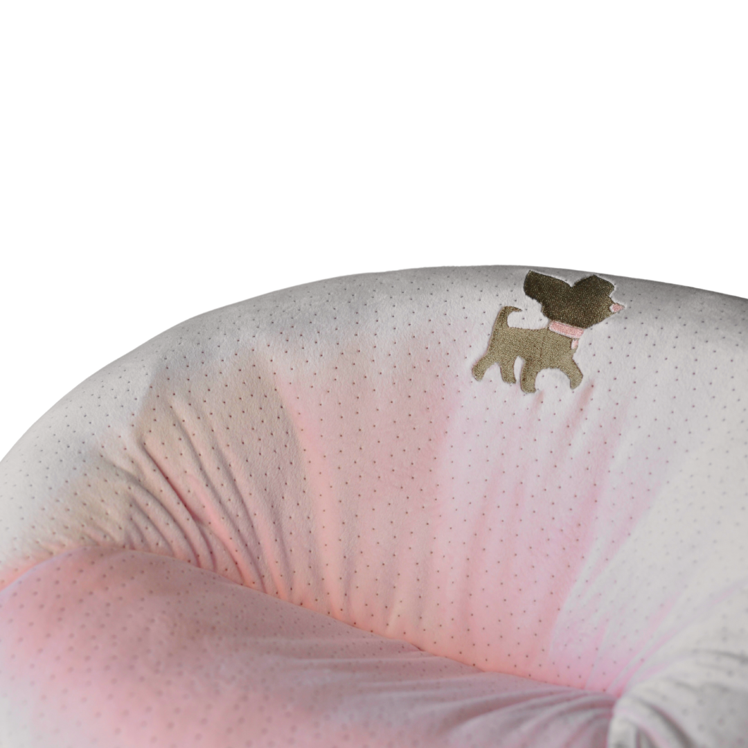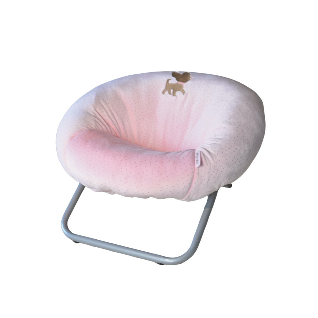 Gevulde zachte hoes in roze stof met Mini Dots, met chihuahua (ons logo) op geborduurd, voor de Relax Stoel van Happy House. Deze hoes zorgt voor extra comfort en beschermt de randen van de Relax Stoel, zodat uw hondje in alle comfort en zachtheid kan wegdromen.